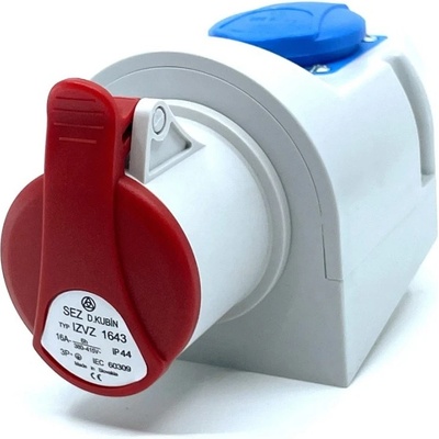 SEZ Zásuvka nástěnná IZVZ 1643 16A 4p + 230VPrůmyslová nástěnná zásuvka značky SEZ na omítku kombinovaná se zásuvkou 230V. Tyto zásuvky a vidlice jsou určeny pro připojování...