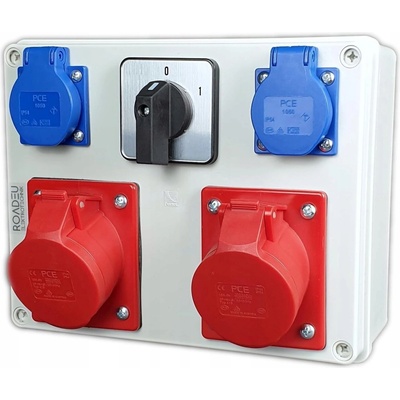 RoadEu – Stavební rozvaděč s silovými zásuvkami 2x 16A 5P, 2x 230V a s vypínačem 0-1. Vysoce kvalitní vnější zásuvky PCE Náš rozvaděč je předem zapojený a připravený k...