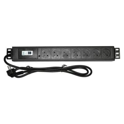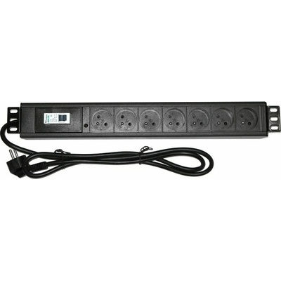 XtendLan ZASUVKA7B1-19; 19" rozvodný panel 7x 230 V , zásuvky dle ČSN, indikátor napětí, jistič typu C16 , výška 1,5U, 1,8 m přívod.
