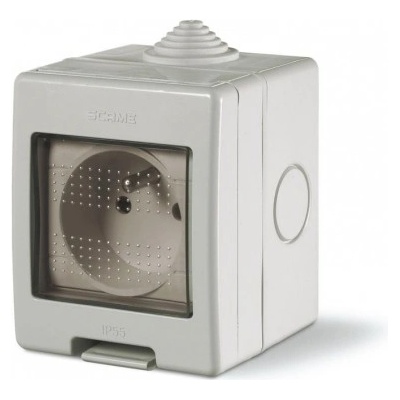 Zásuvka nástěnná domovní s víčkem a průhledným krytem z měkčeného PVC - 2P+E, 16A, 250V (230V), IP55.