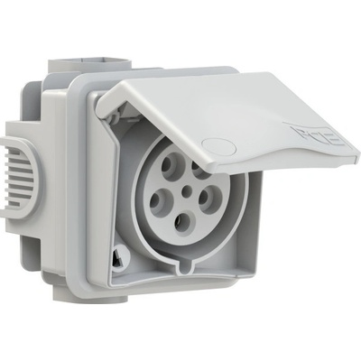 Zásuvka pod omítku designová, 5-pólová, 32A / 400V, 6h, IP44, šedá.