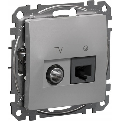 Datová + TV zásuvka s konektory: 1x RJ45 kat.6 UTP, 1x TV koaxiální, ztráta 4dB. Barva: Aluminium, design: Sedna, bez rámečku.