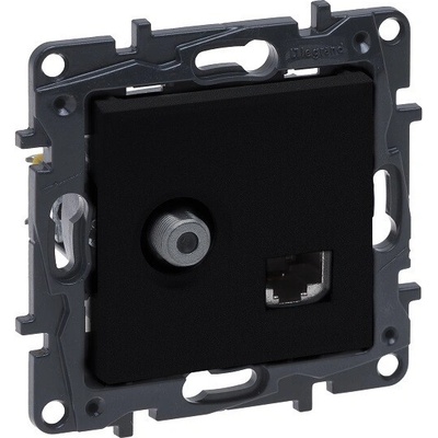 LEGRAND 863577 Niloé STEP zásuvka TV typ F + RJ45 6UTP černá nové řady výrobce Legrand. Díky systému zámků na montážní desce je možné lehce spojit montážní desky a instalace je rychlejší a snadnější.