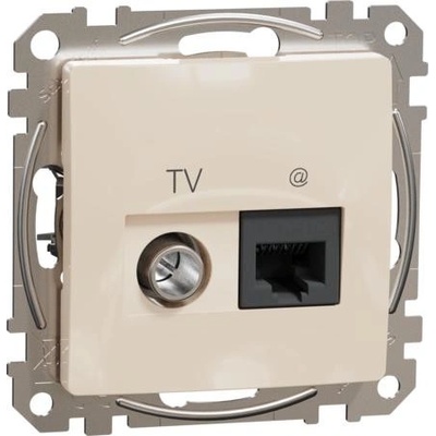 Datová + TV zásuvka s konektory: 1x RJ45 kat.6 UTP, 1x TV koaxiální, ztráta 4dB. Barva: bílá, design: Sedna, bez rámečku.