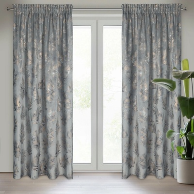 Závěs GLORIA ze sametové látky, příjemné na dotek se vzorem exotických listů. Třpytivý potisk exotických listů ve stříbrných a zlatých barvách aplikovaný na kontrastním pozadí...