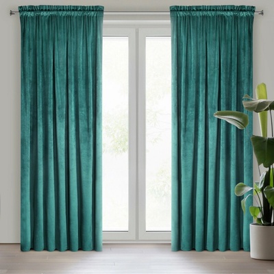 Jednobarevný sametový závěs, šířka: 135 cm, délka: 300 cm, barva: tmavě tyrkysová, hmotnost: 200 GSM, složení: 100% polyester.