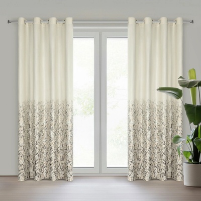 Hotový sametový závěs s lesklým potiskem v barvě šampaňské, šířka: 140 cm, délka: 270 cm, barva: vícebarevná, hmotnost: 200 GSM, složení: 100% polyester.