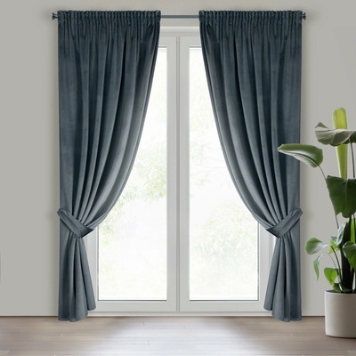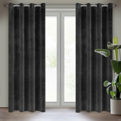 Jednobarevný sametový závěs se šňůrkou, šířka: 140 cm, délka: 300 cm, barva: grafitová, hmotnost: 200 GSM, složení: 100% polyester.