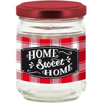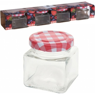 Zavařovací skleněná transparentní sklenička hranatého tvaru s kovovým víčkem na závit v dekoru kára. Sada 4 ks. Bude se hodit k zavařování oblíbeného pečeného čaje, na uložení...