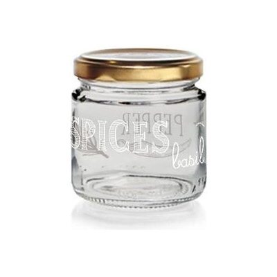 Zavařovací skleněná transparentní sklenice se závitem o objemu 0,212 l, s kovovým víčkem ve zlaté barvě. Tato menší kulatá sklenice se bude hodit k zavařování dětských...