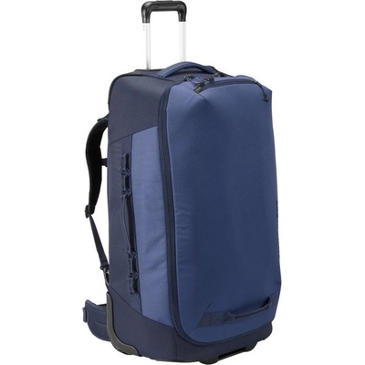 odolné modré zavazadlo 84l na 2 kolečkách nositelné jako batoh díky ramenním popruhům, s uzamykatelnými zipy, dvěma organizačními kapsami, ID štítkem, rukojetí odolnou proti...