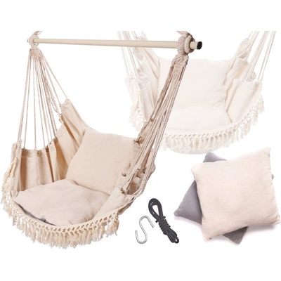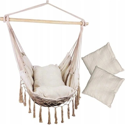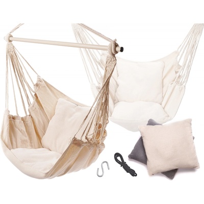 Brazilské závěsné houpací křeslo s Kovovou tyčí a polštáři, béžová Houpací síť ve tvaru pohodlného křesla v brazilském stylu. Kombinace houpací sítě a křesla v jednom! Zajistí...