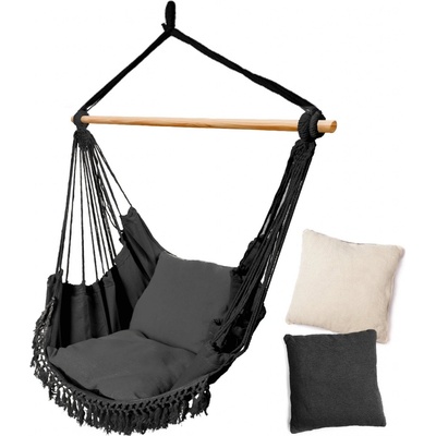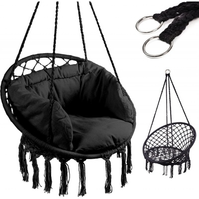 Závěsné houpací křeslo BOHO s polštářem 108x80 cm - černé Ideální řešení pro relaxaci na čerstvém vzduchu! Můžete v ní odpočívat, pít kávu, číst knihu nebo usnout, ideální pro...
