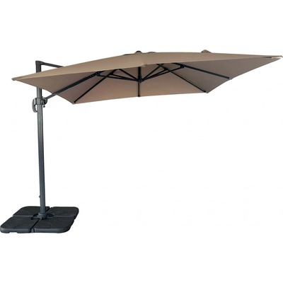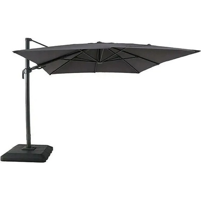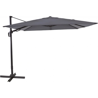 Závěsný slunečník čtvercový 3 x 3 m, 8 ocelových žeber 12 x 18 mm, polyester šedé barvy 160g/m2. Pevná černá ocelová tyč o průměru 48 mm. Stojan (součástí výrobku) je možno...