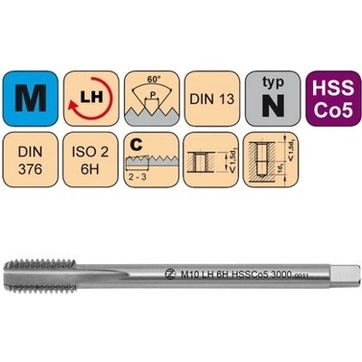 Rozměry: - Průměr závitu: 6 mm - Stoupání závitu: 1 mm - Celková délka: 50 mm - Délka řezné části: 17 mm - Průměr stopky: 4,5 mm - Rozměr čtyřhranu pro vratidlo: 3,55 mm...