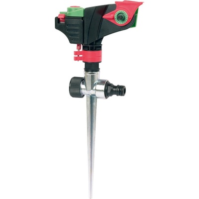 zavlažovač impulsní, hrotový lze nastavit rozptyl proudu, vzdálenost rozstřiku a také požadovaná výseč zavlažované plochy rozstřikovač včetně zapichovacího trnu vyrobeno z...