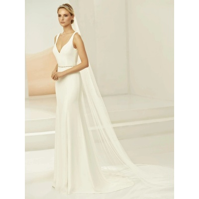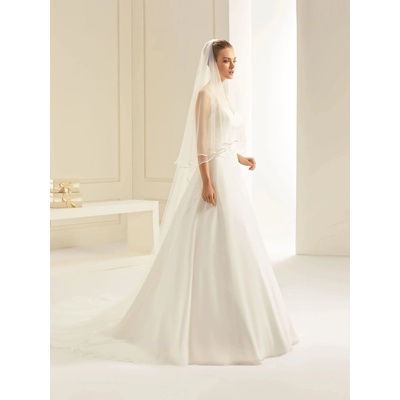 Tento jednovrstvový svatební závoj je elegantním doplňkem, který dodává svatebním šatům jemný nádech luxusu. Model S-380 má délku 250 cm, hladký zastřižený okraj a je vyroben z...