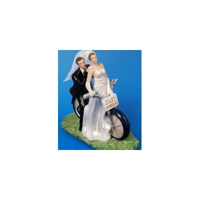 Kouzelný svatební pár na kole, nápis just married. Výška: 10 cm