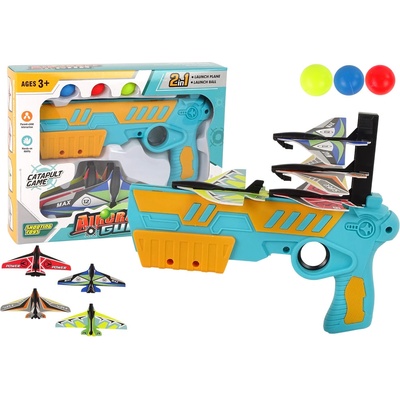 Pistol na kukičky a vystřelovací letadla 2v1 Airbattle Odpalovací zařízení má zásobník, do kterého lze vložit tři letadla. Aby bylo možné vystřelit pokaždé jedno letadlo, musí...