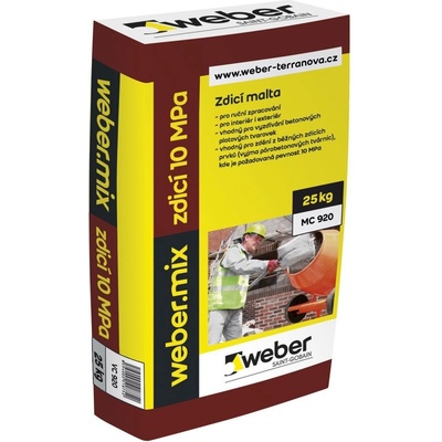 Zdící malta Webermix pro zdění v interiéru a exteriéru. Suchá maltová směs Webermix zdicí malta 10 MPa 25 kg je určena pro zdění. Hmota je na bázi anorganického plniva, pojiva a...