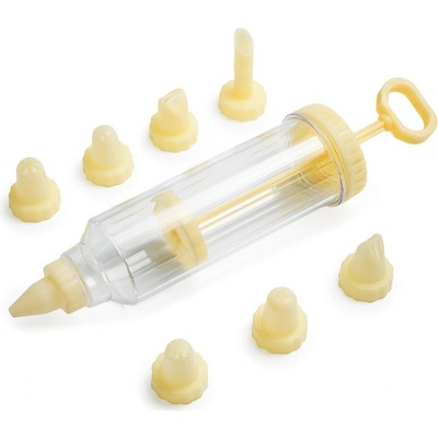 Zdobička na cukroví pístová 20 cm, pr. 5 cm, 8 nástavců, CULINARIA, PH. délka pístu: 20 cm průměr: 5 cm 8 nástavce materiál: PE / PP barva: krémová - hnědá Pístová zdobička CULINARIA je vyrobena z kvalitního plastu. Součástí balení je 8 trysek. Zdobička cukroví se dá...