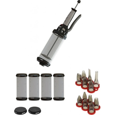 Pístová zdobička cukroví Le TUBE de Buyer pro přesné a regulovatelné dávkování, zdobení a plnění krémů. Sada obsahuje zdobičku, 4x nádobu o objemu 0,75 l a 12 zdobících...