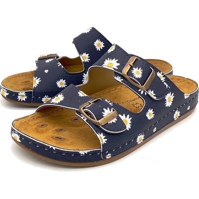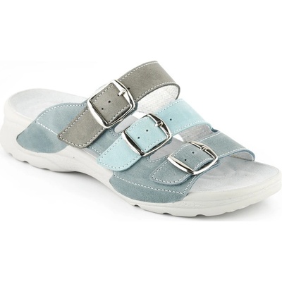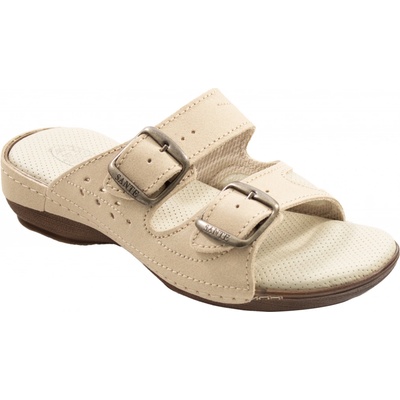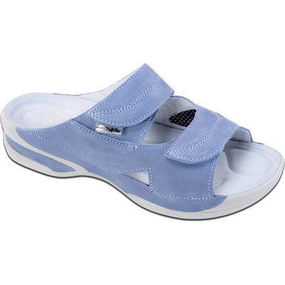 Dámské zdravotní pantofle vhodné pro širší chodidlo. Vnitřek obuvi tvoří sedmibodová masážní kožená stélka. Dva regulovatelné pásky v nártové části zajistí, že si obuv...