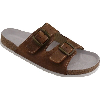 Pohodlné pánské pantofle Medistyle Erik jsou v hnědé barvě. Svršek obuvi je ze dvou kožených pásků, které jsou spojeny přezkou. Díky přezkám se dá šířka nastavit dle velikosti...