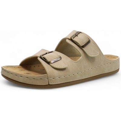 Pohodlné pánské pantofle Medistyle Erik jsou v hnědé barvě. Svršek obuvi je ze dvou kožených pásků, které jsou spojeny přezkou. Díky přezkám se dá šířka nastavit dle velikosti...