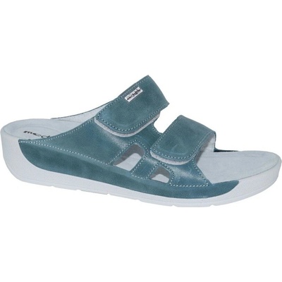 Zdravotní korkový pantofel s otevřenou špičkou modré barvy se světlou podrážkou. Anatomicky tvarovaná stélka a bílá podrážka jsou vhodné na venkovní i vnitřní užití. Regulace...