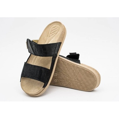 Zdravotní pantofle Milami mají anatomicky tvarovanou koženou stélku a podrážku. Dva pásky přes nárt jsou ze syntetiky, s potiskem, na dvě přezky, kterými nastavíte přes nárt dle...