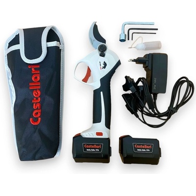 SADA OBSAHUJE: Aku nůžky CASTELLARI RYNO 63, Teleskopickou tyč k aku nůžkám CASTELLARI RYNO 63 1,5 - 2,2 m,Prodlužovací kabel RY01A Elektrické nůžky poháněné lithiovou baterií....