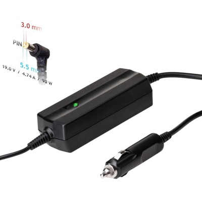 Akyga AK-ND-37 nabíječka do auta 19V 4,74A 90W - 5,5x3,0mm + pin konektor Autonabíječka - napájecí zdroj do auta určený pro vybrané modely notebooků Samsung Kompatibilní s...