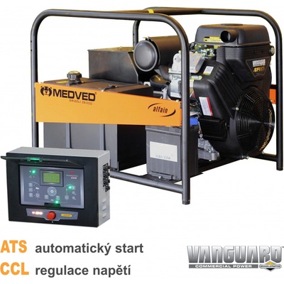 Třífázový záložní generátor MEDVED ATS s automatickým startem od českého výrobce ALFA IN a.s. Rozsah dodávky - Elektrocentrála MEDVED GRIZZLI 25000 V CCL EFI - Řídící...