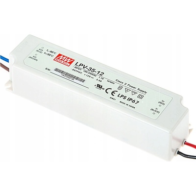 Napájecí zdroj 12V 3A 35W Mean Well LPV-35-12 pro LED IP67 Impulsní napájecí zdroje řady LPV značky Mean Well jsou zařízení v vzduchotěsném plastovém pouzdře s krytím IP67,...
