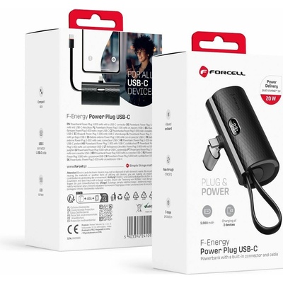 FORCELL Powerbank F-Energy Power Plug F5K3 5 000mAh s vestavěným konektorem Typ C PD 20W černá Powerbank Forcell Power Plug USB-C je navržen tak, aby byl co nejpohodlnější na...