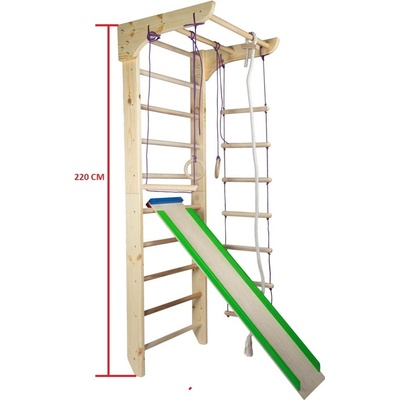 Žebřiny s příslušenstvím KINDER 3-2 – Výška 220/240 cm, Nosnost 120 kg Hledáte kvalitní a multifunkční žebřiny s hrazdou a lanovým příslušenstvím do dětského pokoje, domácí...