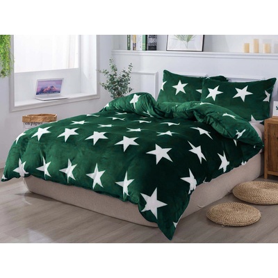 Zelené plyšové povlečení hvězdy pro hřejívé objetí v ložnici i dětském pokoji Hledáte ideální ložní prádlo na zimu? Heboučké mikroplyšové povlečení LÝDIE ve tmavě zelené v...