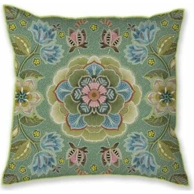 Překrásný dekorační polštář posetý drobnými kvítky na zeleném podkladu. Polštář je obšitý paspulkou ve výraznější zelené barvě. Zkombinujte ho se zeleným sametovým polštářem...