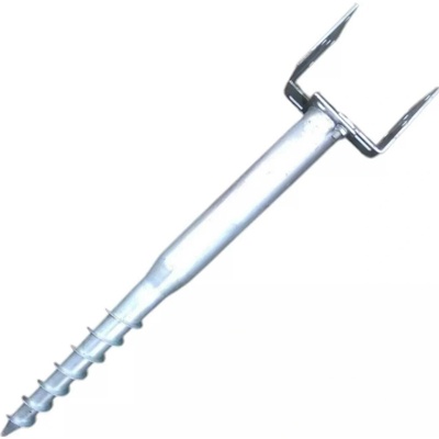 Žárově zinkovaná šroubovací sada s U patkou. U v názvu zemního vrutu udává šířku profilu U-patky pro uchycení dřevěného trámu. Použití na plotové sloupky, pergoly, terasy,...