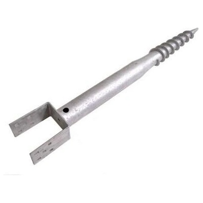 Žárově zinkovaná šroubovací sada s U patkou. U v názvu zemního vrutu udává šířku profilu U-patky pro uchycení dřevěného trámu. Použití na plotové sloupky, pergoly, terasy,...