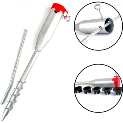Zemní vrut MTR® série G s redukcemi dodáváme v rozměru 68/550mm. Vrut je žárově pozinkován. Obsahuje sadu 5 kusů plastových redukcí o průměru 24-58mm. Využívá se ke kotvení...
