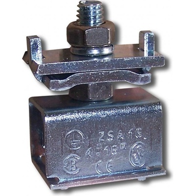 ZEMNICÍ SVORKA ZSA 16 - Pomocí této svorky lze připojit ochranný vodič na kovové předměty a konstrukce kruhového tvaru (např. trubky). Výrobek se skládá z vlastní svorky...