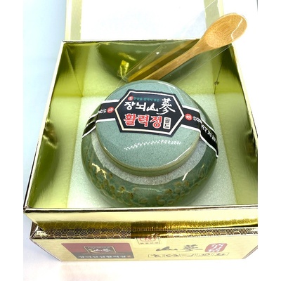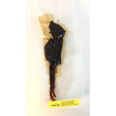 Celý kořen korejského červeného ženšenu nakládaný v medu, velmi měkký a chuťově skvělý, denně kousek o váze cca 1-3 gramy.