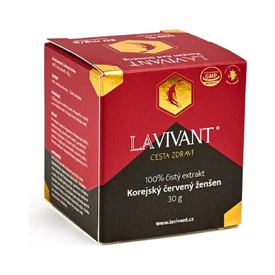 Lavivant Korejský červený ženšen, extrakt, saponiny 80 mg/g Lavivant Doplněk stravy Lavivant Korejský červený ženšen, extrakt, saponiny 80mg/g.Korejský ženšen, známý také jako...