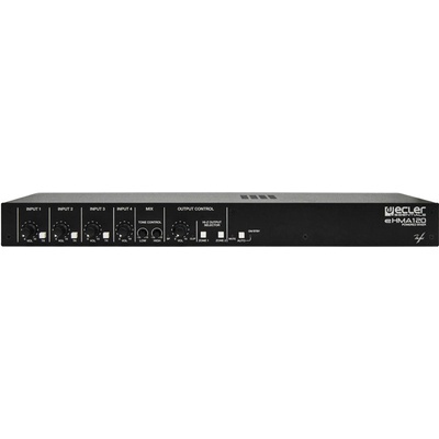 Kompaktní rozhlasová ústředna s mixážním zesilovačem 120W, výstupy pro 100V reproduktory, 3 mikrofonní vstupy s konektory 1xDIN, 2xJack (phantomové napájení pouze pro 1....