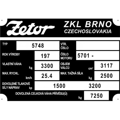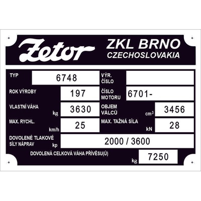 Tažná síla 1350kg, více údajů předtisk Věrná replika původních štítku.Provedení elox. hliník. Doživotní záruka na černou barvu.Další služba: Na výrobní možný dotisk nebo ražba...