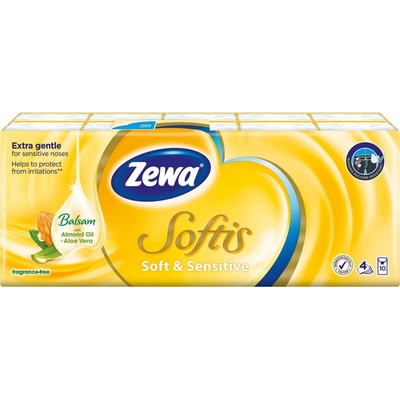 Zewa Softis Soft & Sensitive 4vrstvé papírové kapesníky, 10× 9 ks Zewa Softis Soft & Sensitive 4vrstvé papírové kapesníky představují spolehlivé řešení pro každodenní potřeby...