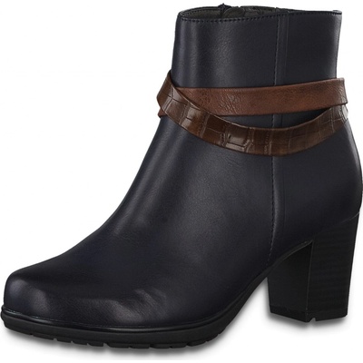 Dámské nízké kozačky značky Jana z jejich luxusní řady SOLF LINE. Obuv je ušita z hladké eko kůže v temně modré barvě, která je decentně ozdobena hnědými pásečky nad kotníkem....
