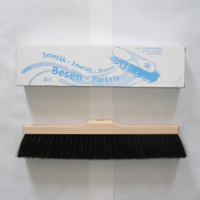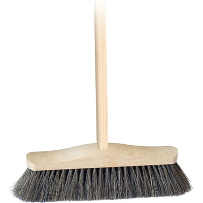 Smeták 28 cm, dřevěný nelakovaný, žíně směs 50/50, s holí 130 cm. šířka: 28 cm materiál: dřevo délka hole: 130 cm Dřevěný smeták s násadou, osazený kvalitní směsí umělých vláken a koňské žíně v poměru 1:1. Vhodné do domácnosti na jemný prach i hrubé nečistoty.